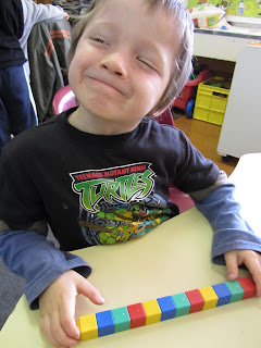 We've been learning about patterns for maths. We made lots of different patterns with different objects.